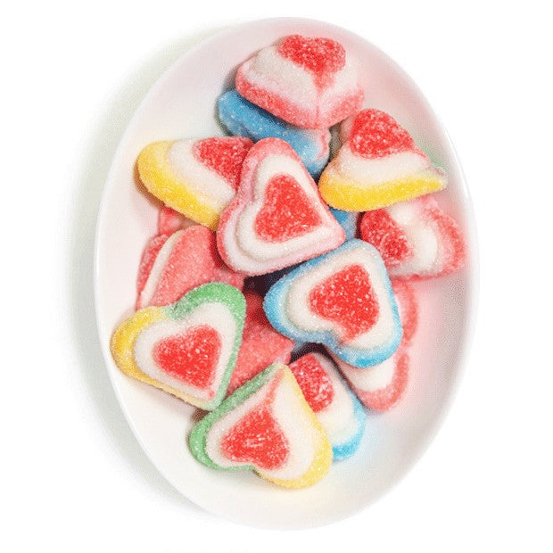 These little heart shaped Fruit flavoured Gums with foam gum on the underside will make your heart throb. Perfect for Valentines and wedding Favours and No artificial colours.